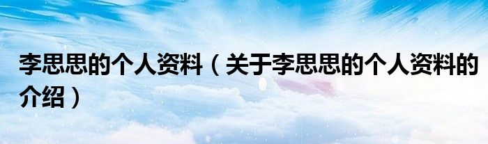 大家好,小安来为大家解答以上的问题。李思思的个人资料,关于李思思的个人资料的介绍很多人还不知道,现在让我们一起来看看吧!