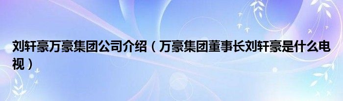 大家好,小安来为大家讲解下。刘轩豪万豪集团公司介绍,万豪集团董事长刘轩豪是什么电视很多人还不知道,现在让我们一起来看看吧!