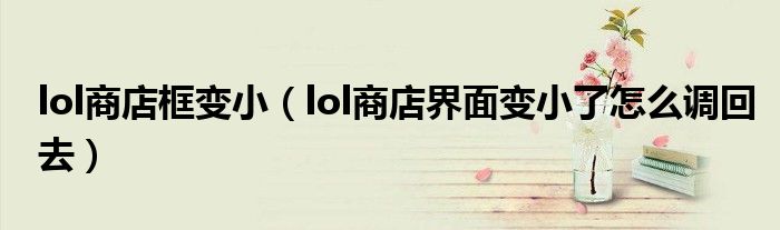 大家好,小安来为大家讲解下。lol商店框变小,lol商店界面变小了怎么调回去很多人还不知道,现在让我们一起来看看吧!