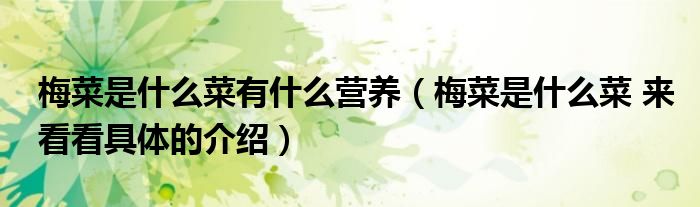 大家好,小安来为大家讲解下。梅菜是什么菜有什么营养,梅菜是什么菜 来看看具体的介绍很多人还不知道,现在让我们一起来看看吧!