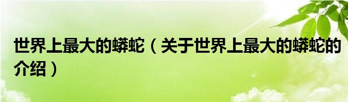 大家好,小安来为大家解答以上的问题。世界上最大的蟒蛇,关于世界上最大的蟒蛇的介绍很多人还不知道,现在让我们一起来看看吧!