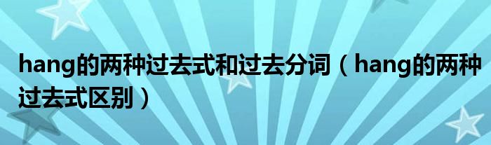 大家好,小安来为大家讲解下。hang的两种过去式和过去分词,hang的两种过去式区别很多人还不知道,现在让我们一起来看看吧!