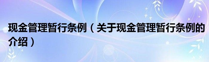 大家好,小安来为大家解答以上的问题。现金管理暂行条例,关于现金管理暂行条例的介绍很多人还不知道,现在让我们一起来看看吧!