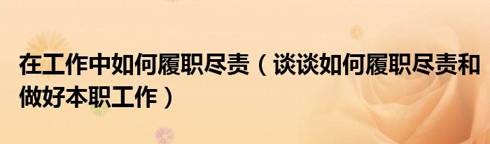 大家好,小安来为大家讲解下。在工作中如何履职尽责,谈谈如何履职尽责和做好本职工作很多人还不知道,现在让我们一起来看看吧!