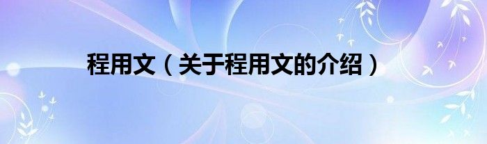 大家好,小安来为大家解答以上的问题。程用文,关于程用文的介绍很多人还不知道,现在让我们一起来看看吧!
