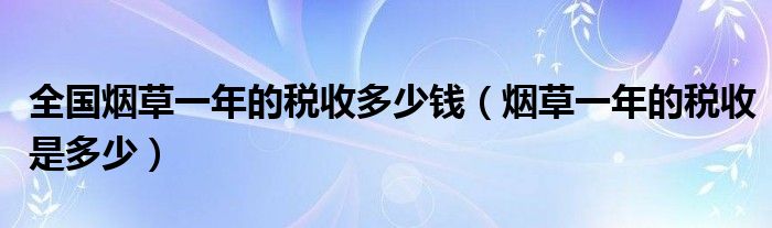 大家好,小安来为大家讲解下。全国烟草一年的税收多少钱,烟草一年的税收是多少很多人还不知道,现在让我们一起来看看吧!