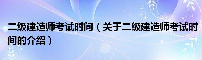 大家好,小安来为大家解答以上的问题。二级建造师考试时间,关于二级建造师考试时间的介绍很多人还不知道,现在让我们一起来看看吧!