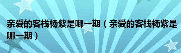 大家好,小安来为大家讲解下。亲爱的客栈杨紫是哪一期,亲爱的客栈杨紫是哪一期很多人还不知道,现在让我们一起来看看吧!