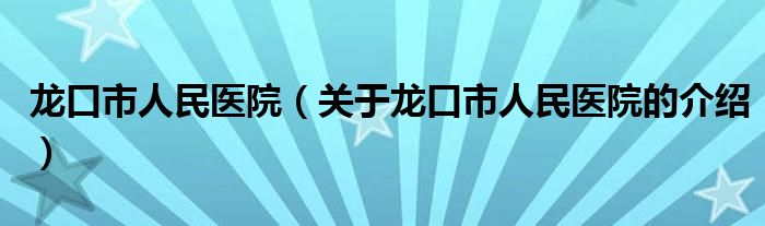 大家好,小安来为大家解答以上的问题。龙口市人民医院,关于龙口市人民医院的介绍很多人还不知道,现在让我们一起来看看吧!