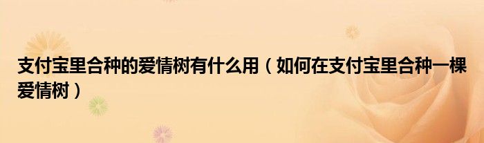 大家好,小安来为大家讲解下。支付宝里合种的爱情树有什么用,如何在支付宝里合种一棵爱情树很多人还不知道,现在让我们一起来看看吧!