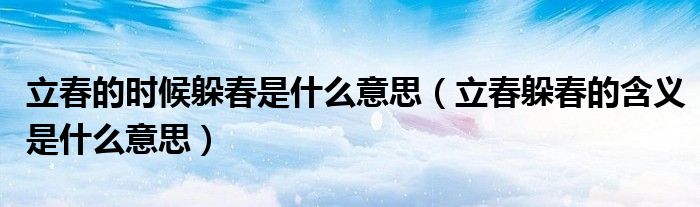 大家好,小安来为大家讲解下。立春的时候躲春是什么意思,立春躲春的含义是什么意思很多人还不知道,现在让我们一起来看看吧!