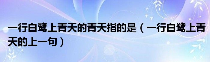 大家好,小安来为大家讲解下。一行白鹭上青天的青天指的是,一行白鹭上青天的上一句很多人还不知道,现在让我们一起来看看吧!