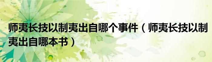 大家好,小安来为大家讲解下。师夷长技以制夷出自哪个事件,师夷长技以制夷出自哪本书很多人还不知道,现在让我们一起来看看吧!