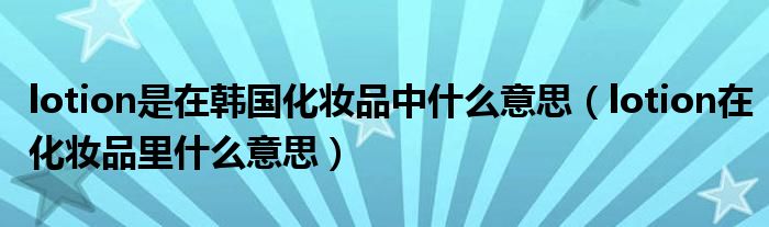 大家好,小安来为大家讲解下。lotion是在韩国化妆品中什么意思,lotion在化妆品里什么意思很多人还不知道,现在让我们一起来看看吧!