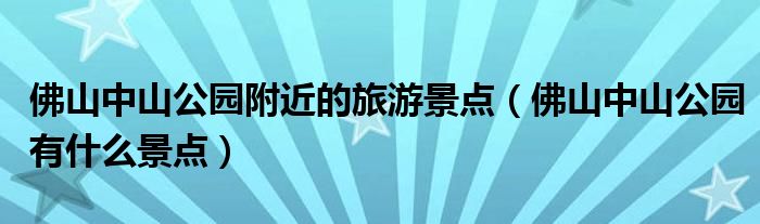大家好,小安来为大家讲解下。佛山中山公园附近的旅游景点,佛山中山公园有什么景点很多人还不知道,现在让我们一起来看看吧!