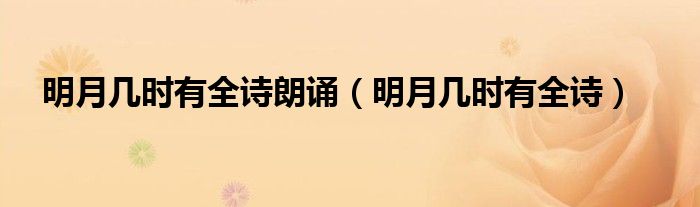 大家好,小安来为大家讲解下。明月几时有全诗朗诵,明月几时有全诗很多人还不知道,现在让我们一起来看看吧!