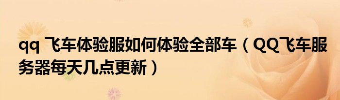 大家好,小安来为大家讲解下。qq 飞车体验服如何体验全部车,QQ飞车服务器每天几点更新很多人还不知道,现在让我们一起来看看吧!