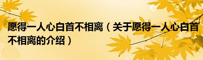 大家好,小安来为大家解答以上的问题。愿得一人心白首不相离,关于愿得一人心白首不相离的介绍很多人还不知道,现在让我们一起来看看吧!