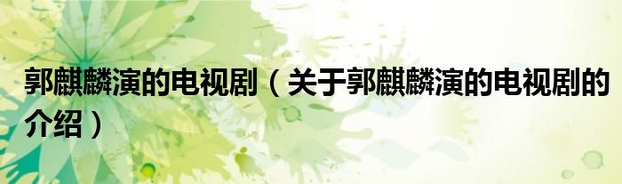 大家好,小安来为大家解答以上的问题。郭麒麟演的电视剧,关于郭麒麟演的电视剧的介绍很多人还不知道,现在让我们一起来看看吧!