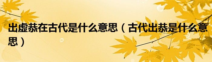 大家好,小安来为大家讲解下。出虚恭在古代是什么意思,古代出恭是什么意思很多人还不知道,现在让我们一起来看看吧!