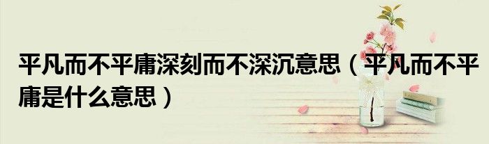 大家好,小安来为大家讲解下。平凡而不平庸深刻而不深沉意思,平凡而不平庸是什么意思很多人还不知道,现在让我们一起来看看吧!