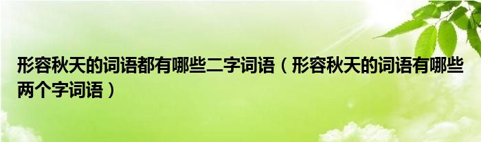 大家好,小安来为大家讲解下。形容秋天的词语都有哪些二字词语,形容秋天的词语有哪些两个字词语很多人还不知道,现在让我们一起来看看吧!