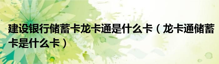 大家好,小安来为大家讲解下。建设银行储蓄卡龙卡通是什么卡,龙卡通储蓄卡是什么卡很多人还不知道,现在让我们一起来看看吧!