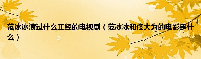大家好,小安来为大家讲解下。范冰冰演过什么正经的电视剧,范冰冰和佟大为的电影是什么很多人还不知道,现在让我们一起来看看吧!