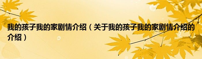 大家好,小安来为大家解答以上的问题。我的孩子我的家剧情介绍,关于我的孩子我的家剧情介绍的介绍很多人还不知道,现在让我们一起来看看吧!