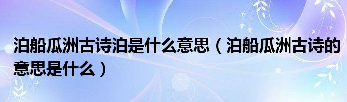 大家好,小安来为大家讲解下。泊船瓜洲古诗泊是什么意思,泊船瓜洲古诗的意思是什么很多人还不知道,现在让我们一起来看看吧!