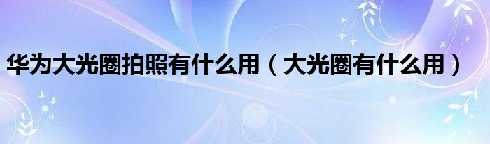 大家好,小安来为大家讲解下。华为大光圈拍照有什么用,大光圈有什么用很多人还不知道,现在让我们一起来看看吧!