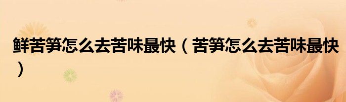 大家好,小安来为大家讲解下。鲜苦笋怎么去苦味最快,苦笋怎么去苦味最快很多人还不知道,现在让我们一起来看看吧!
