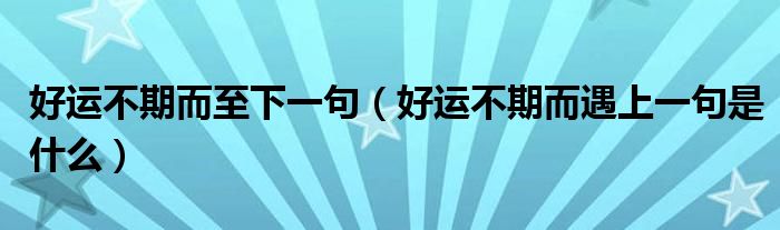 大家好,小安来为大家讲解下。好运不期而至下一句,好运不期而遇上一句是什么很多人还不知道,现在让我们一起来看看吧!