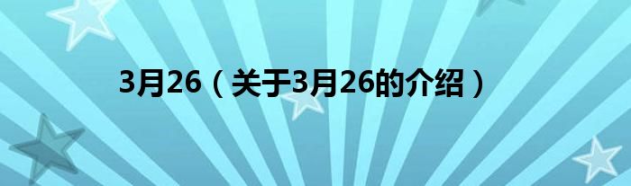 大家好,小安来为大家解答以上的问题。3月26,关于3月26的介绍很多人还不知道,现在让我们一起来看看吧!