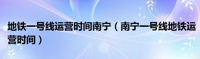 大家好,小安来为大家讲解下。地铁一号线运营时间南宁,南宁一号线地铁运营时间很多人还不知道,现在让我们一起来看看吧!