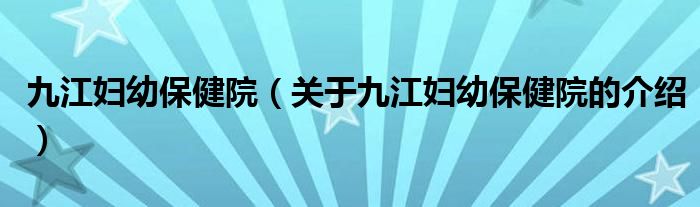 大家好,小安来为大家解答以上的问题。九江妇幼保健院,关于九江妇幼保健院的介绍很多人还不知道,现在让我们一起来看看吧!