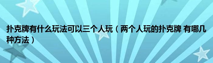 大家好,小安来为大家讲解下。扑克牌有什么玩法可以三个人玩,两个人玩的扑克牌 有哪几种方法很多人还不知道,现在让我们一起来看看吧!