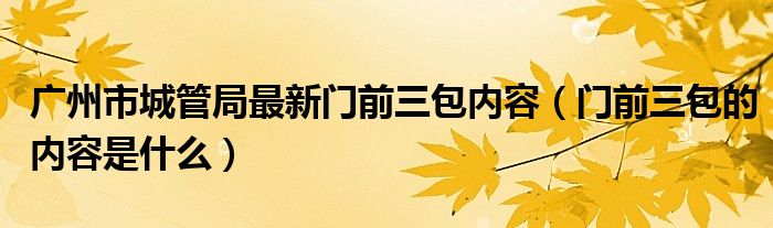 大家好,小安来为大家讲解下。广州市城管局最新门前三包内容,门前三包的内容是什么很多人还不知道,现在让我们一起来看看吧!