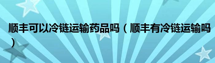 大家好,小安来为大家讲解下。顺丰可以冷链运输药品吗,顺丰有冷链运输吗很多人还不知道,现在让我们一起来看看吧!