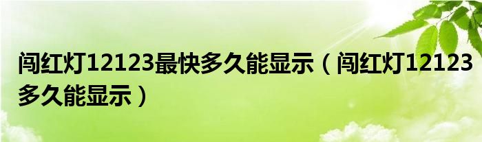大家好,小安来为大家讲解下。闯红灯12123最快多久能显示,闯红灯12123多久能显示很多人还不知道,现在让我们一起来看看吧!