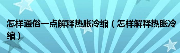 大家好,小安来为大家讲解下。怎样通俗一点解释热胀冷缩,怎样解释热胀冷缩很多人还不知道,现在让我们一起来看看吧!