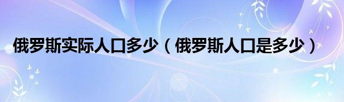 大家好,小安来为大家讲解下。俄罗斯实际人口多少,俄罗斯人口是多少很多人还不知道,现在让我们一起来看看吧!