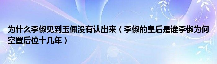 大家好,小安来为大家讲解下。为什么李俶见到玉佩没有认出来,李俶的皇后是谁李俶为何空置后位十几年很多人还不知道,现在让我们一起来看看吧!