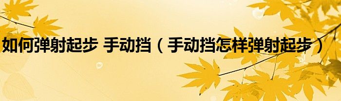大家好,小安来为大家讲解下。如何弹射起步 手动挡,手动挡怎样弹射起步很多人还不知道,现在让我们一起来看看吧!