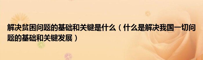 大家好,小安来为大家讲解下。解决贫困问题的基础和关键是什么,什么是解决我国一切问题的基础和关键发展很多人还不知道,现在让我们一起来看看吧!