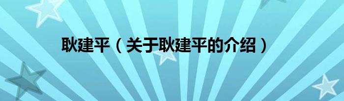 大家好,小安来为大家解答以上的问题。耿建平,关于耿建平的介绍很多人还不知道,现在让我们一起来看看吧!