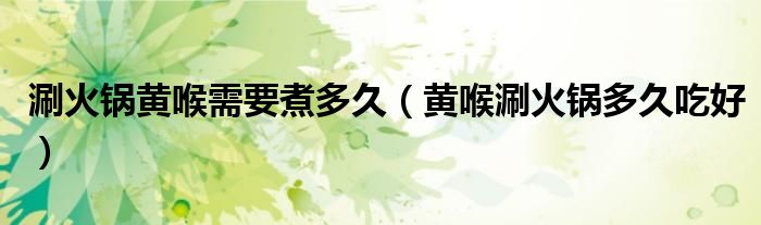 大家好,小安来为大家讲解下。涮火锅黄喉需要煮多久,黄喉涮火锅多久吃好很多人还不知道,现在让我们一起来看看吧!