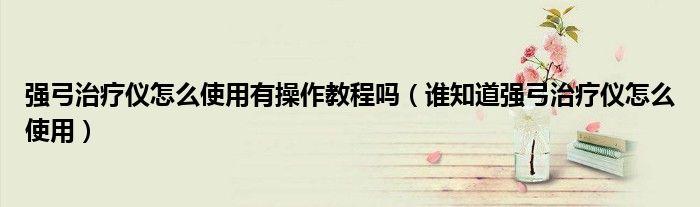 大家好,小安来为大家讲解下。强弓治疗仪怎么使用有操作教程吗,谁知道强弓治疗仪怎么使用很多人还不知道,现在让我们一起来看看吧!