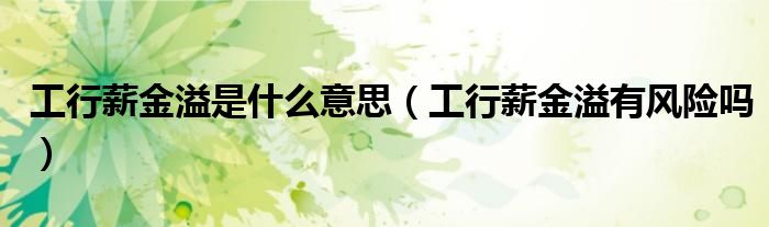 大家好,小安来为大家讲解下。工行薪金溢是什么意思,工行薪金溢有风险吗很多人还不知道,现在让我们一起来看看吧!