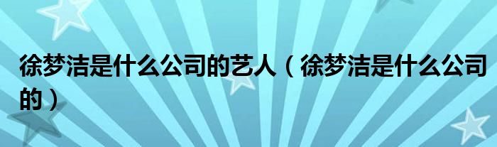 大家好,小安来为大家讲解下。徐梦洁是什么公司的艺人,徐梦洁是什么公司的很多人还不知道,现在让我们一起来看看吧!